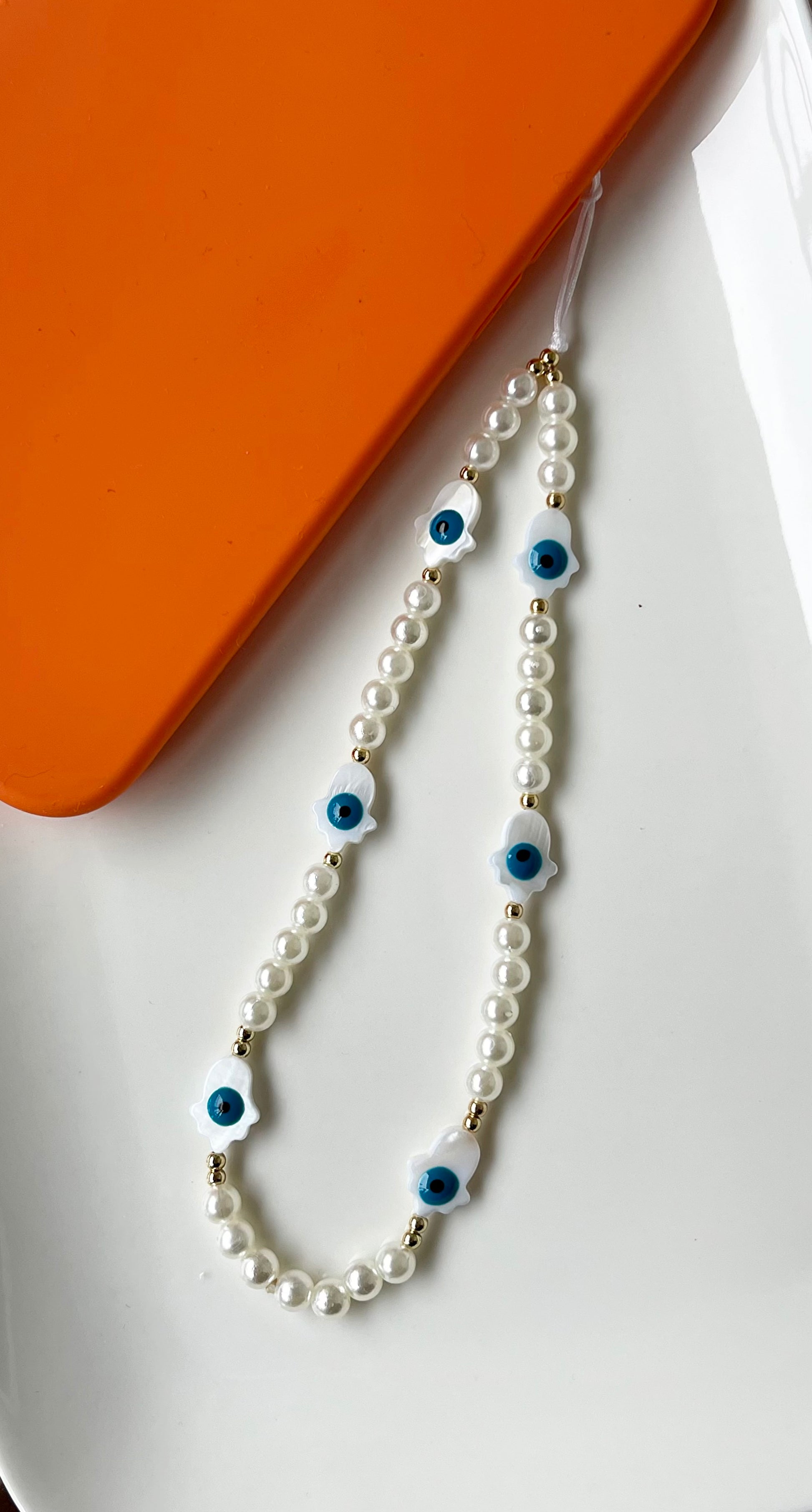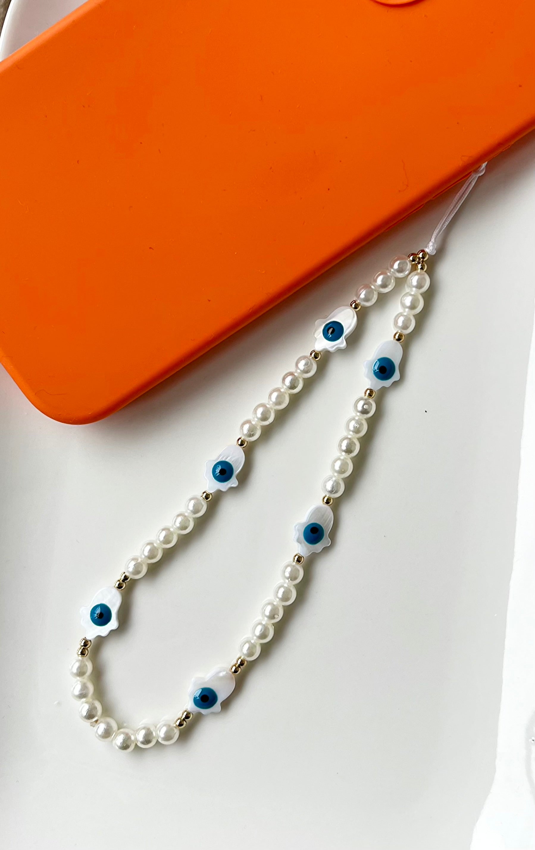 Elegante Handykette mit Perlen & Nazar Augen – Schutz trifft auf Stil
